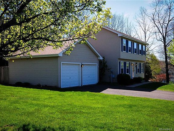 Welcome to Castlewood Enjoy this sunny colonial on a corner lot in a quiet neighborhood. This home has an open floor plan and is great for entertaining. The kitchen is in a U shape with a large peninsula. There are sliders to the deck which leads to the fully fenced backyard. There is also a firepit for those cool summer nights. The basement is a walk out with a wet bar, half bath and a storage room. The two basement rooms are already plumbed for heating to be added. You can walk out of the basement to the fire pit area and back yard. The home features 3 bedrooms. The primary bedroom has a full bath and a walk in closet. There is another full bath on the 2nd floor. The laundry is near the kitchen on the first floor. There is a tot lot and a field within the subdivision. Rainbow Reservoir is within walking distance and is a great place for boating, canoeing and kayaking. The location has easy access to East Granby, Granby, Suffield, Bloomfield, Windsor Locks, Bradley International Airport, Route 20, and I-91.