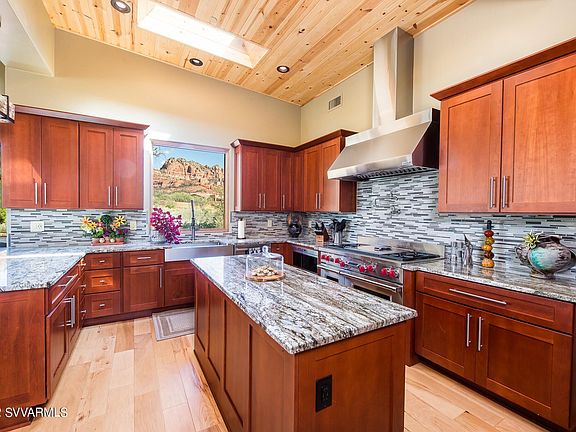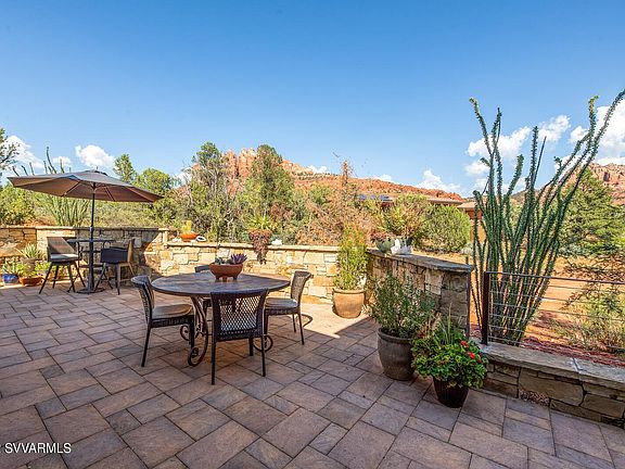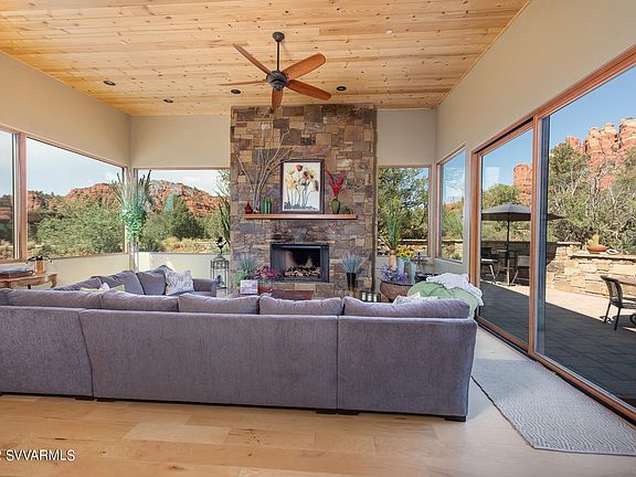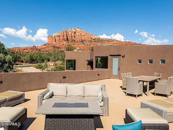 Cathedral Rock Ranch is one of the most beautiful Gated locations amongst the red rocks. Spectacular views in all directions. This home has a natural red rock creek that flows during rain storms. A natural waterfall occurs outside the Owner's suite with wonderful views from every room. The kitchen is loaded with SubZero and Wolf appliances. In addition to patio dining, there is a large rooftop deck above the garage to enjoy the awesome sunsets or stargazing. Each ensuite bedroom also has it's own private deck. The large fireplace in the Great Room is covered in beautiful stone and flanked by spectacular views with another in the main bedroom . The large garage is over 900 Sq Ft to accommodate vehicles plus additional toys. Deer and birds are regular visitors This is an Owner/Agent.