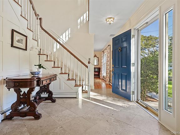 Nestled on a quiet cul-de-sac, this elegant Colonial blends timeless design with modern comfort. A grand two-story entry leads to formal living and dining rooms with hardwood floors, crown molding, and classic details. Gather in the living room to enjoy the wood burning fireplace with marble surround on a cold winter’s night. The chef’s kitchen features granite counters, stainless steel appliances, a mahogany-topped island with wine rack, a cozy coffee bar with second sink, and a spacious sunlit eating are. The kitchen is open to the family room boasting built-ins and sliding glass doors to a private bluestone patio - perfect for entertaining. Upstairs, the primary suite offers a walk-in closet and spa-like bath with Jacuzzi tub and tiled shower. Two additional bedrooms, a hall bath and conveniently located laundry room complete the second level. The walk-up attic and finished lower level provide ample storage. This low maintenance home with generator hook-up is surrounded by mature landscaping and bordering Graham Hills Park. This peaceful retreat is just minutes from all that Pleasantville has to offer.