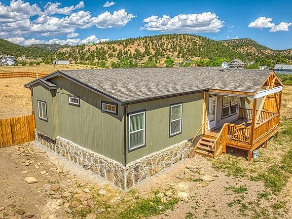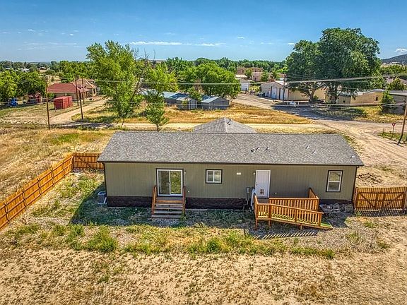 Beautiful nearly new Manufactured Home sitting on 6 fenced lots consisting of 3/4 of an acre on the West edge of Aguilar. This home is a 2022 Karsten and is like new. The open floor plan is inviting and the modern finishes are exceptional. The Kitchen has a large pantry and the dining room leads out to the back yard for a great place to entertain. The home offers 3 bedrooms and 2 full bathrooms. The Primary Suite is very large and exudes elegance. The fenced in back yard is wonderful for children or pets. The home is situated nicely to enjoy the Sunrise from the Front Covered Deck or the Sunsets from the Back Deck. Aguilar is located just 20 minutes from Trinidad or Walsenburg along the Scenic Byway leading to the Apishapa Valley in the heart of Elk Country, just an hour south of Pueblo. This is the perfect pairing of a new and modern home in a peaceful country small town setting.