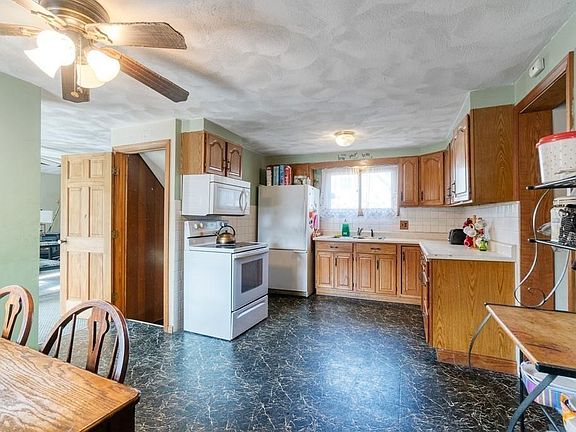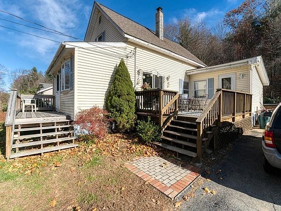 Great home with all the major items done - roof (2008), boiler (2014), hot water heater (2012), well pump (2014) - Eat-in kitchen with oak cabinets and a great breezeway with large coat closet. Spacious Living Room with sliders to the deck, pellet stove that will heat the main floor very comfortably and add a cozy look to the space. First floor bedroom is large and good size closet. Full bathroom completes the first floor. Head up to the second floor with two additional bedrooms. One currently being used as a Master with a ceiling fan and double closet. Both of the upstairs bedrooms have vaulted ceilings! The finished lower level offers some options to add additional living space, work room and laundry room. Great flat backyard with fire pit and shed. Don't miss this opportunity to build some equity with a some TLC!