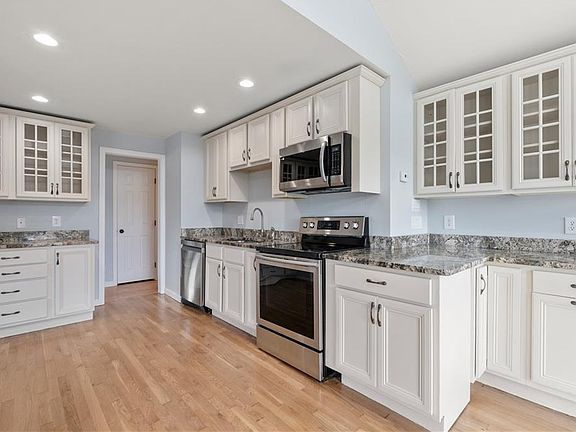 Welcome to your private oasis, where comfort & tranquility meet against a backdrop of scenic water views w/direct access offering water sports such as fishing, canoeing & kayaking. Step inside to discover a bright, airy layout enhanced by vaulted ceilings, w/living room nestled around a mantled fireplace. The heart of the home lies within the spacious kitchen, offering a wealth of off-white cabinetry paired w/stainless appliances, granite counters & recessed lighting open to a lovely breakfast nook/sunroom w/wall of glass overlooking the yard & sliders open to the deck within easy reach of the water amenities. Convenience meets functionality w/3 main floor bedrooms including the primary ensuite w/walk-in shower, while a full bath w/tub & shower serves the 2 secondary bedrooms, The fully finished walkout lower level is a contemporary haven featuring large rec room, office, bedroom & full bath. A new furnace & solar panels assure peak efficiency & peace of mind in this waterfront home!