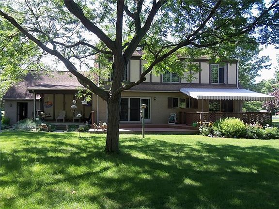 Attractive 21 year old tudor style village home on approx 1.5 acres. Spacious open kitchen with island and tiled floor, adjacent eating area plus formal dining room both with access to rear decks and patio. Four bedrooms, 2 1/2 baths, 1st. floor study/office, and 1st floor laundry/utility room. Attached two car garage plus a large (24 x 40 ) polebarn. Property is nicely landscaped and lot has that country feel yet conveniently located in the village!