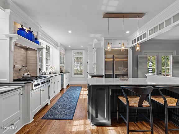 Every detail of this home has been meticulously curated to honor its legacy while integrating high-end, contemporary comforts in an open concept floor plan. Hardwood floors, custom built-ins, period moldings, original fireplace with Lincoln Memorial marble hearth and surround flow throughout, maintaining timeless warmth and authenticity. The kitchen is a true showpiece with a six-burner cooktop, double ovens, built in sub zero refrigerator, Caesarstone quartz countertops and a stunning natural marble island slab. The main-level primary suite offers a true private retreat with high end design and timeless finishes, a walk-in closet with ample built-in storage, spa-inspired ensuite bath featuring double sinks, soaking tub, walk-in tiled shower, Cambria quartz counters and tub deck. A true highlight of the home, the sunroom is filled with natural light and peaceful garden views. With direct access to the outdoor patio and landscaped yard, the sunroom seamlessly extends the home's indoor-outdoor living experience. The professionally landscaped and fenced yard provides rare privacy in the heart of the Village with mature plantings, lush greenery, and well-designed hardscaping. A Pinehurst Country Club membership is attached to the property, the perfect complement to life in America's most historic golf village.
