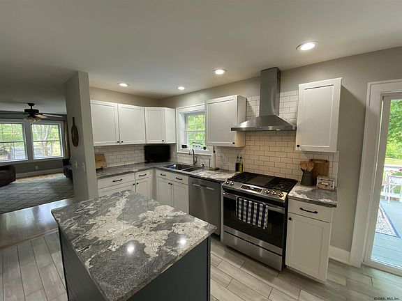 Adorable remodeled cottage style ranch situated on 1.38 acre lot in quiet area on country road. Totally updated interior w gorgeous kitchen w granite, custom cabinetry & SS appliances, dining area w new fixtures & large living room w HW floors. Amazing master w shiplap accent wall & gorgeous bath w custom tile shower & W/I closet. Cute front porch walks you into beautiful foyer w 1st floor laundry & 2 additional bedrooms and full bath. Full walkout basement can be finished for additional space. 2 car detached barn garage, nice sized entertaining deck, fire pit, shed and large yard to roam about make this home a must see! 2020-06-24