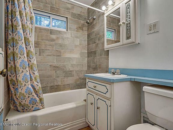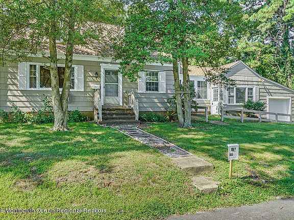 Cute and charming cape in desirable private community in Herbertsville section of Brick. This home features 3 bedrooms and 1.5 bath. Generous sized living room with hardwood floors and wood burning fireplace. Formal dining room also with hardwood floors. Kitchen with newer shaker style cabinets and laminate floors. Updated bathroom with new tile shower. Double breeze way could easily be used as a play room or family room. Attached one car garage. Private yard on 1/4 acre property. Newer roof and freshly painted.