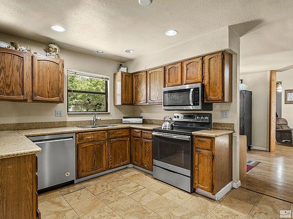 Great location in desired area. This 3 bedroom, 2 bath single and 4 car garage home has so much potential. The setting has sizable backyard with covered patio and room to play. Kitchen has granite countertops, Master bedroom has double sinks. Newer water heater. Detached 2 car garage behind the fence and RV parking. Come with vision and you'll see a wonderful home.