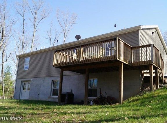 REDUCED - Opportunity to own a home in a great location! You will love the privacy and peace and quiet with this three bedroom, two bath vinyl sided rancher on 1.5 wooded acres in Southern Morgan County West Virginia. Great views off back deck. Features include front porch, rear deck, full walkout basement and wet weather stream.