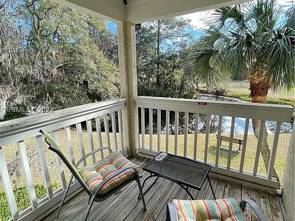 A RARE FIND in SHIPYARD! This bright and light second floor 2bed/2bath end unit in beautiful Colonnade Club Villas has been well-cared for and used very lightly only by the Seller. The bathrooms and kitchen, with granite just installed, are completely updated. The living room has vaulted cathedral ceilings which allow for large windows to enjoy the stunning views of the lagoon, golf course and swaying Spanish Moss. All mechanicals are like new due to minimal use. This would make an outstanding rental, 2nd home or primary home, with just a short shaded stroll to the beach, a large pool, hot tub and grilling area - and pet friendly for owners!