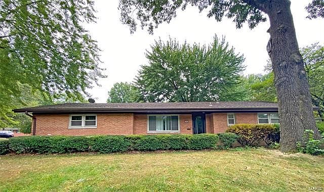 Brick ranch on double - nearly half acre lot - close to shopping, restaurants and St Louis access. This 2 bedroom, 2 bath ranch has lots of potential. The side entry 2 car garage is currently converted to a work space, but can be returned to original use. The Sun room and garage are not included in total square footage. The sun room walks out to a patio, deck and fenced yard. HVAC is newer. The sunken family room has a wood burning fireplace. The equipped kitchen features a gas stove, refrigerator and dishwasher. Home is sold as is. Seller to make no repairs. Buyer responsible for occupancy permit.