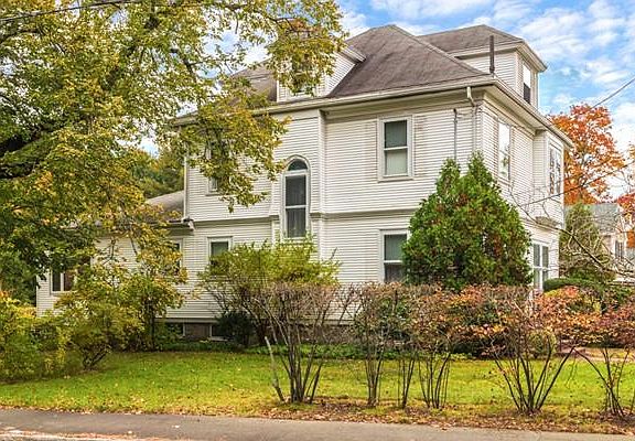 Celebrate the Holidays in your new home!! Plenty of room for everyone in this stately New England Colonial. Four full bedrooms on second level plus room for another on the third floor. Fireplaces in living room, dining room, and Master bedroom. Beautiful hardwood floors protected by carpet on first floor. Built-in china cabinet, book-shelves and hallway window seat. Plus finished lower level game room complete with bar and pool table! Private oversized yard and two garages. Walk to shopping, schools and commuter rail - minutes from the highway. Don't miss this one!