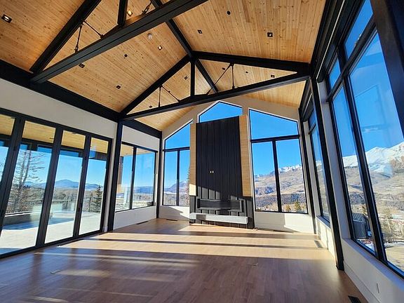 With spectacular 270-degree views from Mt Wilson, the San Sophia Ridge to the ski area, this newly constructed home is an idyllic mountain retreat. Located in the desirable Cortina neighborhood, this contemporary ski-in, ski-out sanctuary boasts floor-to-ceiling windows and a spacious deck to take in sunsets and alpenglow vistas. The home's ski room offers direct access to the Sundance ski run so you click into your skis and can enjoy first tracks on the mountain. After a day on the slopes, relax in the hot tub, entertain family and friends in the expansive great room, or curl up by one of the seven fireplaces. Five bedrooms plus a bunk room offer plenty of space for guests, luxurious features include, two steam showers, oxygen, air conditioning, humidification, built in grill & firepit.