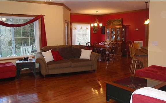 Beautiful custom built one level open floor plan home on 10.39 acres, 2100 sq ft are finished and there is an additional 1200 sq ft partially finished bonus area with a completed half bath - also there are two water heaters. The unfinished area is pieped for wood heat. Custom built cabinetry throughout with nice craftsmanship, pull out drawers, raised bar area for quick meals, breakfast area, formal dining room, shiny hardwood floors and wooden crown moulding, he master suite (21'8 x 13'8'') with sitting area and large master bath with jetted tub and sep shower and double vanity, two additional bedrooms and large hall bath. Home sits atop a knoll and has fabulous view of pasture from the front and complete privacy from the back deck with pasture and wood views. Truly one of a kind with three garages and a circle drive