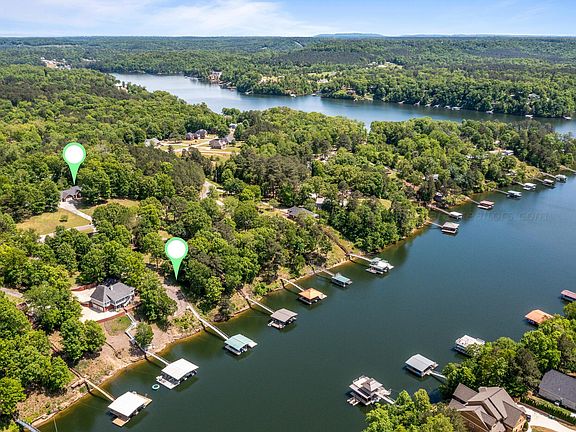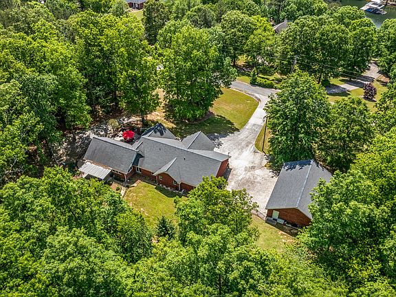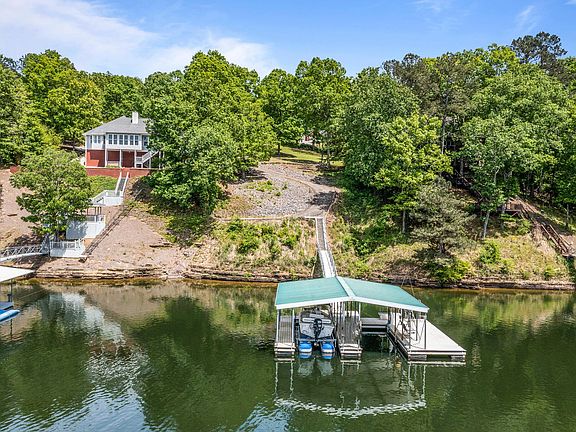 Smith Lake (Simpson Creek) One of the closest locations on the entire lake to I65! Immaculate 4BR/3BA with detached guest house that has kit, BR/BA, and garage w/laundry. Home is open and airy with beautiful views of courtyard with stamped concrete and wrought iron fencing. Waterfront lot included with double slip boat dock, lift, and storage. Year round water! Pride of ownership shows.