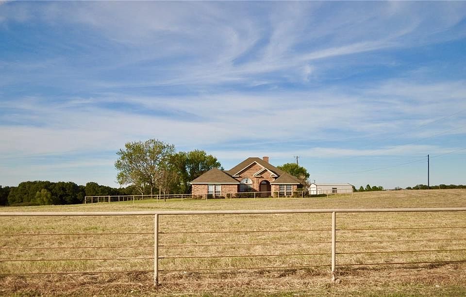 A Dream Location! This 3 bedroom 2 bathroom home sits on 5 acres with trees around the home! Kitchen has center island, tons of cabinetry and a breakfast nook. Formal dining or sitting area just off the spacious living room. Master has door leading to the covered porch, perfect for morning coffee! Pipe fencing with gated entrance, sprinkler system surrounding home and mature landscaping. Workshop has cement slab, electric and overhead door opener.