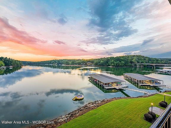 Smith Lake (Waterford Condominiums) A rare opportunity to purchase a top floor end unit at this desirable complex! This unit has a wrap around balcony allowing so much more entertaining space. Fully updated and ready to enjoy! The master bath has a large tile shower. Included is a covered boat slip and dedicated parking space. Adjacent to Trident Marina and Grille. Easy lake living right here!