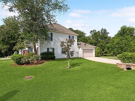 New Orleans style curb appeal on this 3 bedroom 2 1/2 bath garden home In Madisonville Villas. Elegant lighting fixtures and custom window treatments throughout this home. Tons of natural light beams throughout home as you enter through double French doors to living area with gas fireplace and wood floors. Open concept living great for entertaining. Kitchen has breakfast bar, beautiful wood cabinets, stainless appliances and granite counters. Pantry/ laundry room has stackable washer/dryer that will remain with home. Convenient 1/2 bath located off 2 car garage and kitchen for guests. Primary bedroom located on bottom floor with spacious ensuite bath with dual vanities, separate shower, jacuzzi tub, separate water closet, and walk in closet. 2 bedrooms located upstairs share a hall bath. There is a small room off front bedroom that can be used a office, additional closet, or extra toy area. Large covered and uncovered patio with rod iron fence great for barbeques or crawfish boils. HOA covers garbage service and lawn care. Roof is only 3 years old and HVAC units are 3 and 4 years old. Great central location. Blue ribbon schools, Flood zone C so flood insurance is not required.