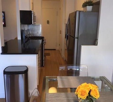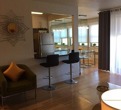 This immaculate beautifully updated 2 bedroom unit features Bamboo flooring throughout. Spacious bright living room with access to large terrace. Dining area adjacent to recently remodeled kitchen with granite counter- tops, glass tiled back splash, new stainless steel appliances . Master Bedroom has 2 sizeable closets and ceiling fan. Full bath is updated with newly tiled tub surround and pedestal sink. Unit features new Bali blinds. Three additional unit closets afford plenty of storage space. Off Street Parking is available for an additional monthly fee.