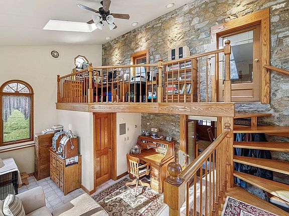 Over 40 acres of picturesque land including multiple outbuildings, a move-in condition stone farmhouse from the 1800's, pastures and so much more! The property includes a Detached 3 Car Garage with large upstairs office area that could be the perfect place for an artist studio, exercise room or anything you choose. The property consists of multiple out buildings including 36x90 Morton Building, 24x32 Heated Shop, Bank Barn, Heavy Use Manure Facility and potential building lot too! The interior of the home offers gorgeous spaces with exposed stone walls, wood molding, high windows, skylights, exposed beams - the perfect balance between the original era and modern time. Enjoy fishing right on your property, wildlife including deer and beautiful sunsets in this hidden country retreat minutes to Routes 22 & 78!