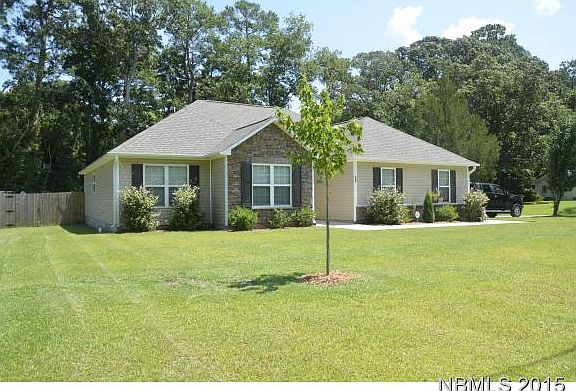 Split floor plan 3 bedroom 2 Bath home with side entry two car garage built in 2013 on large corner lot in the heart of Havelock. Convenient to shopping and MCAS Cherry Point. No City Taxes!! No HOA! Brand new (Nov 2019) Wood Plank Laminate Flooring in living room, dining room, kitchen, foyer and hallway. Stainless steel appliances including GE refrigerator. Vaulted ceilings in living room. Separate laundry room, white faux wood blinds, & fenced backyard with patio are just a few of the reasons to make this house your home!