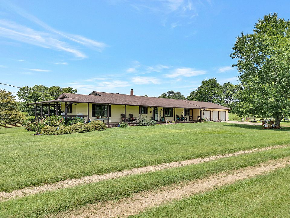 Experience the best of East Tennessee living with this rare 24-acre gem offering over 1,000 feet of Nolichucky River frontage and breathtaking mountain views. tucked away on a quiet deed-end road, this peaceful retreat offers natural beauty, privacy and functionality. A long driveway leads to a charming ranch-style home with spacious wrap-around porches and a breezeway connecting to a detached 3 car garage. The partially fenced property includes a wood-frame barn, a newer metal barn, a garden area, a dog run and river access. Both barns are wired with electricity, offering added versatility for storage, animals or hobbies. Inside, the 3 bedroom, 3 bath home features a warm, open layout with a large living room, a cozy dining room with a brick fireplace and a generous U-shaped kitchen with oak cabinets, a center island, granite countertops and KitchenAid appliances. The kitchen also includes double ovens, 109 square feet of countertop space and is a cook's or baker's dream. The main-level primary suite has porch access, a walk-in closet and a double-sink vanity. The heated and cooled basement provides flexible space for a recreation room, workshop or gym and includes a wood-burning stove for added warmth. The oversized 3-car garage insulated, wired and ready for a wood stove installation. Recent upgrades (within the last three years) include granite countertops, a gas cooktop, sink and faucet, updated cabinet and bath hardware, lighting and ceiling fans throughout, a front storm door, stairway railing, motion-sensor lighting in the garage, two sliding barn doors and a tow-year old hot tub. New luxury vinyl plank flooring runs throughout most of the main level, with carpet in the primary bedroom and LVP in the bathrooms. The elevated bluff provides both stunning views and security. This property is outside the FEMA flood zone and does not require flood insurance.