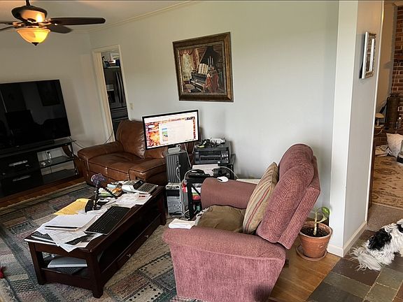 In- Law apartment in basement w/ private entrance & parking. Basement Apt. has laundry hookups also. NO HOA!!! Excellent location close to town, but still very peaceful with beautiful views. This home sits on .96 Acres! Fenced backyard, and large beautiful covered back porch. This home needs some finishing touches, but has great bones and new windows. Two fully working wood burning fireplaces, and solid wood vintage kitchen cabinets. Motivated Seller!!! So much potential for this one. Being sold As Is.
