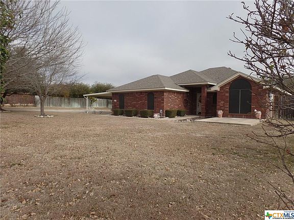 Country living near the city,200 Danzig is a beautiful 3 bedroom 2 bath brick home in the Wells Ranch subdivision just minutes from Fort Hood and shopping. When you walk into this home you will see an open living area with a wood burning corner fireplace, laminate wood flooring throughout, and tile in the kitchen and bathrooms. The open living area flows into the dining and kitchen which boast a corner sink with two windows above for natural light, and a full pantry. The master bedroom is king sized with his/hers closets, and a garden tub shower combo. The home has 2 other queen sized rooms with large closets. There are several bonuses to this home like a Culligan Gold series total home automatic water conditioner, Culligan good water drinking system, a shed with power and hookups for an RV, an extremely large landscaped yard with fencing and mature trees, and a pad for your BBQ grill or firepit. There is a covered porch in back, and open in front for you to enjoy. A must see home!