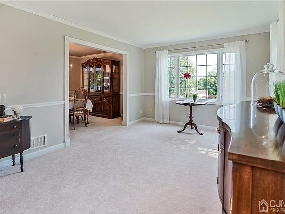 Nestled in the foothills of the Sourland Mountains, this small enclave of 17 homes is a private, treed paradise! Pride in (original) ownership is on display at this 3 bedroom 2 bath Colonial. Every room has been lovingly cared for and maintained. The updated custom kitchen gleams with cherry cabinets, granite countertops, and a chef's induction stove. Make memories in the oversized family room, with a bay window, gas fireplace, custom built-in cabinetry, and slider to a IPE wood deck. With a 20 yr original warranty on the wood, you will enjoy many more years on the deck and views. The second floor offers three bedrooms and two remodeled bathrooms, both of which boast multi-jet showers. A full basement is ready for your finishing touches. There is a two car attached garage and a shed for additional storage. The property has been professionally landscaped and well maintained, extensive outdoor lights illuminate the home at night. Come relax on the hill, and enjoy nature from inside and out!