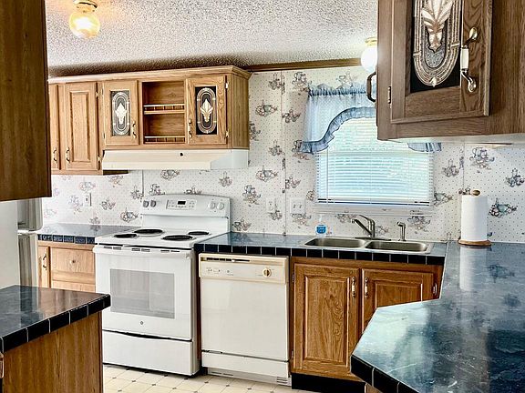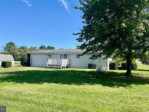 Mobile home on lease land. Well maintained 3BR 2BA doublewide on a 3/4 acre cul-de-sac lot. Home features a large open living space, vaulted LR and DR combined, with access to the kitchen with breakfast area on one side and a study/office with french doors on the opposite side. The large primary suite includes a large closet and an ensuite with double vanities, shower stall and soaking tub. Two additional bedrooms and a full bath are located on the other end of the home. Separate laundry room with washer and dryer included, two storage sheds, rear and side deck. This home is located in Paradise Estates with a monthly lot lease of $550.