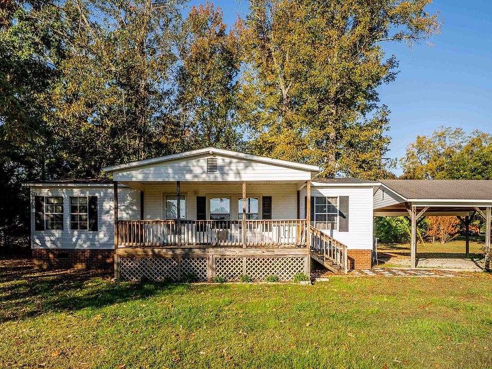 Charming 3 bedroom 2 bath home with large, covered front porch! New Roof and HVAC 2021! City Sewer and water! Living room has wood burning fireplace. Double vanity and walk in shower in Master! Two car carport! Home sits on a half acre lot!
