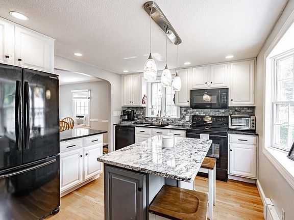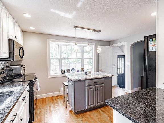 - Kit Dscrp: Flooring - Hardwood, Countertops - Stone/Granite/Solid, Breakfast Bar / Nook, Recessed Lighting, Window(s) - Bay/Bow/Box, Lighting - Pendant