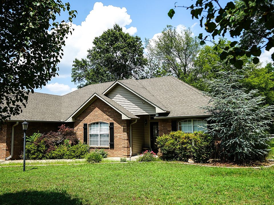 LOCATION: Located northern part of the city of Poteau, Oklahoma, on 200 Deertail, in Foothills Addition. This home is handy to all of the conveniences of the town and is only 26 miles away from the larger city of Ft. Smith, Arkansas, population about 80,000. Area points of interest include the Ouachita National Forest, Lake Wister State Park, the scenic Talimena Drive, Broken Bow Lake, Clayton Lake and Sardis Lake. LAND: This home sits on a level acre of land. It is a corner lot and on a low traffic street. The cement circle driveway and lots of extra cement makes caring for the area between the house and apartment/storage area simple. Property has a lot of mature shade trees scattered around the whole property, it has a park like feeling as you drink tea on the back porch after a hard days work. SERVICES: City water, city sewer, natural gas, mail delivery, trash pickup, school bus route and internet service. HOME: This traditional style brick home was built in 2006, has a cement slab foundation, a composition shingle roof, double paned insulated windows, central electric heat and air. It features approximately 2000 s.f. of heated and cooled living area and has a extra large living room, open kitchen with dining area, four bedrooms, two bathrooms, utility and a double car garage. The cement slab for the covered breezeway make additional car storage. The unique and desireable feature with home is the detached 1 bed 1 bath efficiency appartment/ storage area that is approximatly 900 square feet. If the kitchen was finished and a ductless heat pump installed and it could generate some additional income if used a an Airbnb rental unit or could be used as a home based private office, man cave or she shed. Room dimensions and descriptions include the following: ENTRY: 5 x 6.7, White textured ceilings, laminate flooring, coat closet. LIVING ROOM: 24 x 23 with 9' ceilings, textured walls, laminate wood look floors, fluorescent accent lighting, ceiling fan with light. It has curio shelves near the vault ceiling on both sides of the ceiling. A small dormer facing the back yard provides natural lighting. The fireplace is the focal point of the living room and makes a great place for the family to gather. KITCHEN: 10.7x 11, ceramic tile floors, tan textured walls, white textured ceilings, tile counter tops, Appliances include dishwasher, gas cook stove, vent hood and a deep sink. A large pantry closet in the hall way near the kitchen makes it handy for food storage. DINING ROOM: 12.2 x 13.5, Ceramic tile floors, tan textured walls, raised tray ceilings, ceiling fan with light kit and an exit door leading out to rear patio and back yard. BEDROOM #1: 15 x 11, textured ceilings, textured walls, ceiling fan with light, carpet and extra deep closet. BEDROOM #2: 11 x 13, Carpet, colored textured walls, white textured ceilings and ceiling fan with light. HALL BATHROOM: 8 x 9, Ceramic tile flooring, tub/shower, commode, single vanity with ceramic tops and backsplashes, mirror and lighting above. MASTER BEDROOM: 13.4 x 14, Carpet, textured walls, white vault textured ceilings with a curio shelf with mood lighting, ceiling fan with light and double windows MASTER BATHROOM: 13 x 10 Ceramic tile floor, double ceramic top vanity with ceramic backsplashes, shower, jacuzzi tub, commode, taupe textured walls, white textured ceilings and 2 linen closets. UTILITY/LAUNDRY ROOM: 6 x 8, Large storage cabinets, ceramic tile floors, textured walls, white textured ceilings, and exit door leading to the garage. BEDROOM #4: 12 x 15, Taupe textured walls, white textured ceilings, laminate flooring, and extra deep closets. Currently used as office GARAGE: 22 x 22, Electric garage door. COVERED REAR PATIO: 9 x 24, Slab foundation. MOTHER IN LAW APARTMENT/STORAGE: 35 X 24 has a bed room, full bath/shower with washer and dryer hookups. kitchen (needs finished) is open the extra large living room area. PRICE: $230,000.00 TAXES: $1606.00