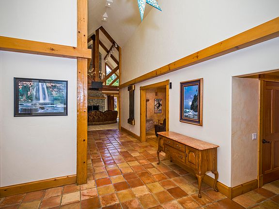 Immaculate, luxury estate that has been meticulously cared for. This expansive 6135sqft home sits on a private 11.10 acres in the Pine Hill Estates, close to downtown Sandpoint, shopping, dining & more. Soaring, 30ft ceilings w/timber accents lead you into a spacious living area complete w/picturesque windows allowing ample natural light, & efficient wood burning fireplace w/floor-to-ceiling natural stone surround. The kitchen is well-equipped featuring custom tile backsplash, massive island w/Butcher's Block top & prep sink, SS Appliances, Double oven, 6 burner range, large garden window, & leads into formal dining large enough to seat 10 comfortably. Master Suite contains vaulted ceilings, private loft, fireplace w/expansive surround, & extra large En-suite bath complete w/dual vanity,