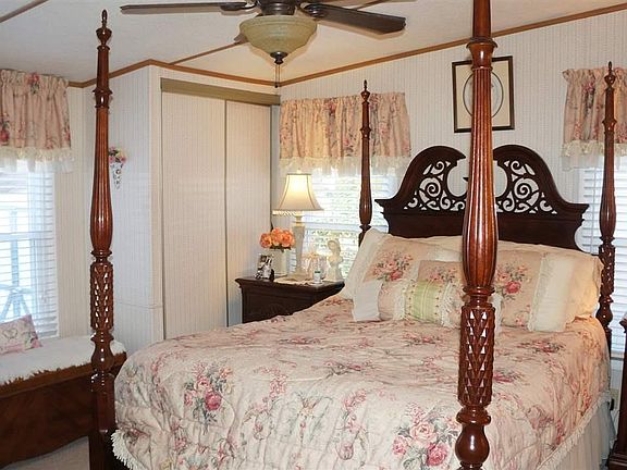Welcome Home! This is the perfect 55+ Community with low maintenance required! Beautiful corner lot, this mobile home features an enclosed porch that is absolutely lovely, large family room with cozy fireplace, dining room, kitchen, Master suite with full bath & two additional bedrooms. Hall bath has a Jacuzzi tub. All appliances included and the furniture included with acceptable offer. Roof & HVAC approx. 4 years, AC brand new, 3 ton TRANE, newer hot water heater. You will be impressed! Financing available to qualified buyer.