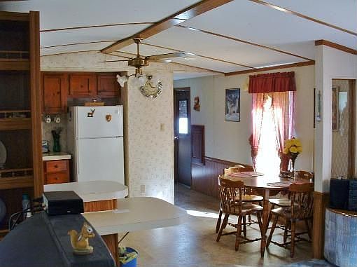 3 BDRM, 2 BATH MOBILE HOME W/ LOTS OF EXTRAS. HOME COMES PART. FURNISHED W/ STOVE, FRIDGE, WandD, QUEEN SZ BED, 2 LAZY BOY RECLINERS, STEREO, 5 PC DINETTE SET, and 2 TV s. LARGE WALK-IN CLOSET IN THE MSTR BDRM. CARPET and PADDING ARE ALMOST NEW, W/ NEW VINYL FLOOR COVERING IN KITCHEN and BTHRMS. CEILINGS HAVE NEW PAINT. ALSO A NEW WOODEN PRIVACY FENCE W/ SEALER AROUND THE BACK OF THE HOME, PLUS THE OUTBUILDINGS HAVE NEW TIN ROOFING ON THEM. THE LOT IS LANDSCAPED W/ LOTS OF FLOWERS and SHRUBS, AN APPLE TREE THAT BEARS LOTS OF DELICIOUS FRUIT, PLUS A GOOD PICNIC TABLE TO ENJOY THE VIEW AND PEAC