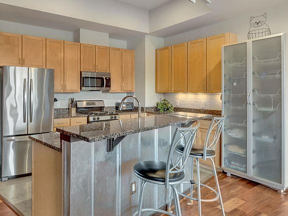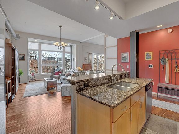Enjoy a wonderful home in a premier location, with one-floor, maintenance-free living. It is light and bright thanks to soaring ceilings and massive windows. There are two bedrooms with adjoining bathrooms that flank a sleek, open kitchen and central living room. There are concrete, hardwood, and ceramic tile floors, plus granite countertops, maple cabinetry, and stainless steel appliances. There is a freestanding gas fireplace, too. It is a second-story end unit, which allows for additional light in the primary suite. The secure building features an elevator, gated parking garage, and individual storage units. The three-acre community, with its own courtyard and gardens, offers a private setting in the heart of Charlottesville, a short walk to Belmont restaurants and the Downtown Mall. The association covers trash pickup, household recycling, water, sewer, and gas, and all exterior maintenance.