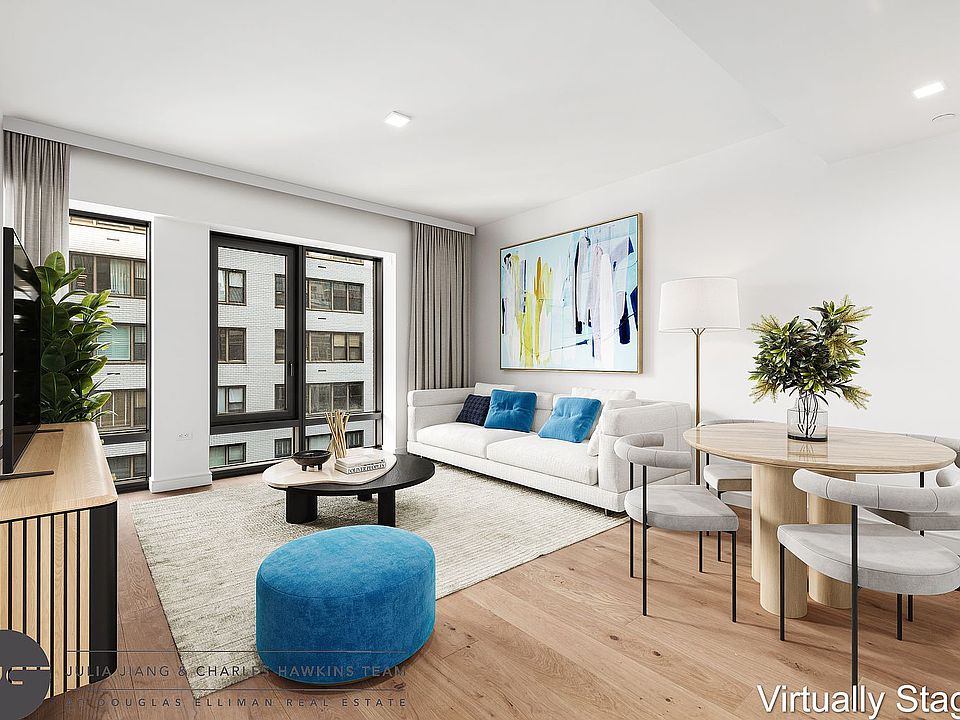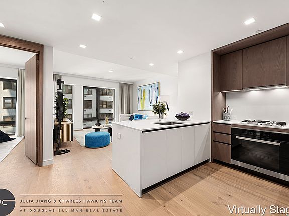 Available October 1, 2023, upon Condo board's approval. Unfurnished 1 Bedroom 1 Bath Approx. 713 SF condo home with bright northern exposures washer & dryer in unit. No pets, reasonable accommodations made for only those with disabilities. Condo Board lease application package and application fees apply. One Year lease minimum, longer lease welcome too. This breathtaking 1 bed, 1 bath loft home is an instant love. This well-proportioned home gives you sunshine kisses from the 8-foot tall bronze windows. Living room is spacious and generously proportioned, connected with an open kitchen island. The Poliform kitchen, designed by Champalimaud, is equipped with a matt-white-lacquer kitchen island, a breakfast bar, oak cabinets, quartz countertops, Dornbracht fixtures and a fully integrated Miele kitchen appliance package as well as washer and dryer. Large and wide bedroom can easily fit a king size bed with 2 end tables, while still having extra room for a TV stand and a desk. Luxurious bathroom features Turkish Lilac marble walls, heated white stone floors, RiFRA vanity, as well as Dornbracht fixtures.The Heating and Cooling system is offered by state-of-the-art Daikin. Additionally, the home has been prewired for automated shades in both living room and bedroom. About the building: Building offers 24 hours concierge service. The lifestyle amenities feature a convivial residents lounge with a fireplace, library wall with built-in mirrored flat screen television, and billiards area, a sun-filled fitness center, locker rooms, sauna, treatment room, interior residence lounge, exterior rooftop lounge and an entertainment center with a kitchen for catering a party. 200 East 21st is a LEED Gold certified sustainable building with reduced energy costs and consumption. Located in the Gramercy neighborhood enjoys and offers incomparable privacy and elegance to the residents of 67 units Beautifully designed landscapes are created by Halsted Welles and Associates. The location is central to all that Union Square park and Madison Square Park have t