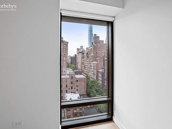 Apartment 10B at 200 East 21st Street features sleek new design in a full-service boutique setting in vibrant Gramercy Park. Designed by BKSK, this masonry and glass facade building blends beauty and sustainability with attention to detail in all aspects of the building and apartments within. The apartment imagined by the design firm Champalimaud offers the finest materials and fixtures. This 1-bedroom's western exposure with glimpses of the treetops of Gramercy Park is enhanced by the over 8-foot-tall bronze windows. The apartment offers 7-inch-wide plank oak flooring and towering interior doors featuring Valli & Valli hardware. The open Poliform kitchen with white matte lacquer breakfast bar and custom oak cabinetry is complemented by white sand quartzite countertops and backsplash. Dornbracht fixtures and Miele appliances complete the handsome kitchen. Turkish Lilac marble walls with white stone floors, custom RiFRA vanity and Dornbracht fixtures create a stunning bathroom. An in-unit Miele washer/dryer and two large closets round out this perfect home. Sorry, no pets allowed.