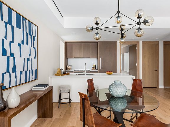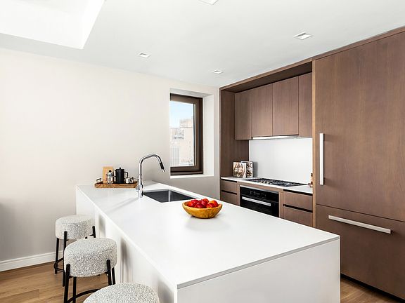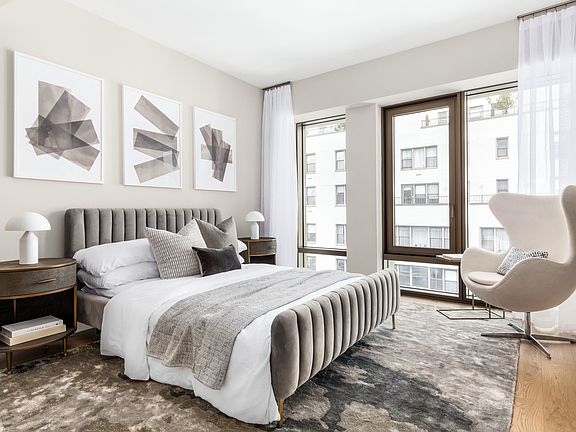 OVER 80% SOLD* IMMEDIATE OCCUPANCY By Appointment Only Residence 10D at 200 East 21st Street is a stunning 1,464 square foot 2-bedroom, 2.5-bath sun-drenched corner home with striking views and beautiful light streaming in from exposures north and south. Thoughtfully proportioned rooms and spaces feature over 8' tall bronze windows and 7" wide plank oak flooring finished in a sophisticated custom smoked oil stain, while grand entry and interior doors feature Valli & Valli hardware throughout. The large Poliform kitchen designed by Champalimaud features a white matte lacquer breakfast bar and custom oak cabinetry finished in a smoked oil stain, complemented by white sand Quartzite countertops and backsplash in a honed suede finish and sleek Dornbracht fixtures. The kitchen is outfitted with a fully integrated luxury appliance package by Miele. Each of the two bedrooms features an en-suite bath with radiant heat flooring and sensuous materiality. The lavish master bath is encased with Turkish Lilac marble walls, complemented by white Sivec marble floors, custom RiFRA vanities, and Dornbracht fittings and fixtures throughout. The secondary bathroom features polished Bianco Perlino marble floors and a custom RiFRA vanity with Dornbracht fittings and fixtures. The powder room is richly appointed with Nero Marquina and white Sivec marble flooring, with a stone feature wall and custom RiFRA vanity. A Miele Prestige Washer and Dryer, state-of-the-art Daikin heating and cooling system, and pre-wiring for motorized shades at all windows complete this outstanding residence. 200 East 21st Street is a private enclave of 67 exceptional residences in the coveted Gramercy neighborhood. The renowned architects at BKSK have brought a sophisticated depth and artistry to the historically contextual masonry and glass façade that is both quiet and commanding. The sumptuous interiors are crafted by the celebrated design firm, Champalimaud, while renowned landscape architect Halsted Welles Associates has designed thoughtfully integrated communal green spaces and landscaped private terraces. Opportunities for wellness abound, as carefully conceived indoor and outdoor spaces create a holistically enriched living experience, including a sky-lit formal Wellness Suite reception area with part-time attendant; sun-filled fitness center with adjacent lockers, sauna, and treatment room; residents' lounge with entertainment center and entertaining kitchen; and integrated planted rooftop lounge designed by Halsted Welles Associates featuring lush and native adaptive plantings and meandering stone pathways for a peaceful retreat from the excitement of the city. The latest addition to Alfa Development's Green Collection of sustainable properties targeting LEED Gold Certification, 200 East 21st Street offers a suite of sustainable features, including solar-heated domestic water; advanced-performance windows and reinforced insulation for reduced energy consumption; rainwater collection for irrigation of the planted gardens; high-efficiency appliances; and responsibly sourced eco-friendly materials and finishes. Pricing and availability subject to change. The complete terms are in an offering plan available from the Sponsor (File No: CD 16-0374). *indicates percentage of units having purchase agreements that have been and accepted by sponsor.