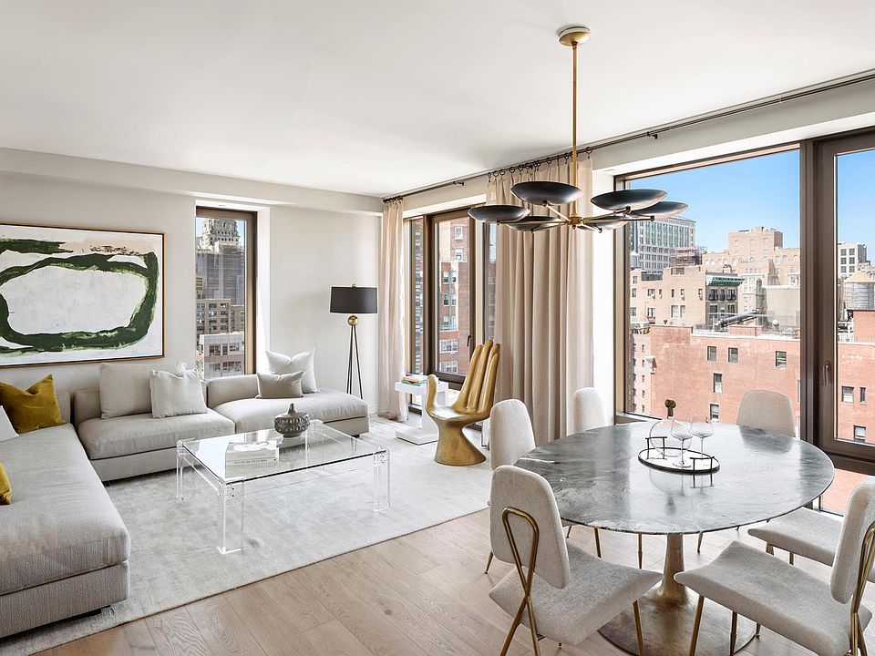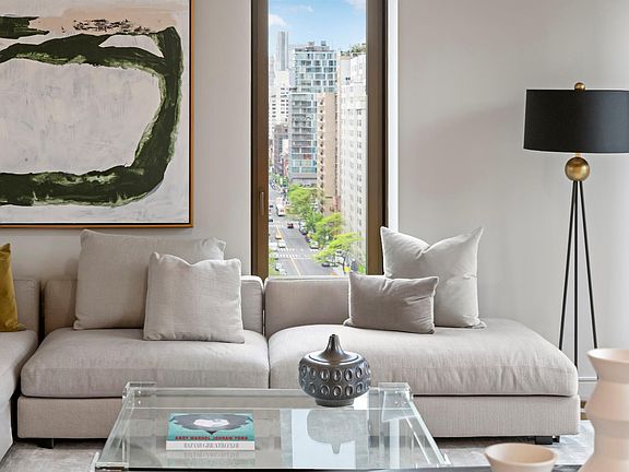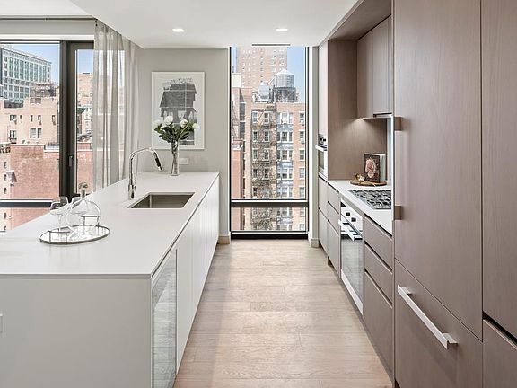 NOW 75% SOLD IMMEDIATE OCCUPANCY By Appointment Only Residence 14A at 200 East 21st Street is a stunning 1,429 square foot 2-bedroom, 2-bath home with striking views and beautiful light streaming in from Southern, Western, and Eastern exposures. Thoughtfully proportioned rooms and spaces feature oversized bronze windows and 7 inch wide plank oak flooring finished in a smoked oil stain, while grand entry and interior doors feature Valli & Valli hardware throughout. The oversized Poliform kitchen features a white matte lacquer peninsula and custom oak cabinetry finished in a smoked oil stain, complemented by white sand Quartzite countertops and backsplash. The kitchen is outfitted with a fully integrated luxury appliance package by Miele. Each of the two bathrooms features radiant heat flooring and sensuous materiality. The lavish master bath is encased with Turkish Lilac marble walls, custom RiFRA vanities, and Dornbracht fittings and fixtures throughout. The secondary bathroom features polished white stone floors and a custom RiFRA vanity with Dornbracht fittings and fixtures. A Miele Prestige Washer and Dryer, state-of-the-art Daikin heating and cooling system, and pre-wiring for motorized shades at all windows complete this outstanding residence at an exceptional price. 200 East 21st Street is a private enclave of 67 exceptional residences in the coveted Gramercy neighborhood. The renowned architects at BKSK have brought a sophisticated depth and artistry to the historically contextual masonry and glass fa?ade that is both quiet and commanding. The sumptuous interiors are crafted by the celebrated design firm, Champalimaud, while renowned landscape architect Halsted Welles Associates has designed thoughtfully integrated public green spaces and landscaped private terraces. Opportunities for wellness abound, as carefully conceived indoor and outdoor communal spaces create a holistically enriched living experience, including a sky-lit formal Wellness Suite reception area with part-time attendant; sun-filled fitness center with adjacent lockers, sauna, and treatment room; residents' lounge with entertainment center and entertaining kitchen; and integrated planted rooftop lounge designed by Halsted Welles Associates featuring lush and native adaptive plantings and meandering stone pathways for a peaceful retreat from the excitement of the city. The latest addition to Alfa Development's Green Collection of sustainable properties targeting LEED Gold Certification, 200 East 21st Street offers a suite of sustainable features, including solar-heated domestic water; advanced-performance windows and reinforced insulation for reduced energy consumption; rainwater collection for irrigation of the planted gardens; high-efficiency appliances; and responsibly sourced eco-friendly materials and finishes. Pricing and availability subject to change. The complete terms are in an offering plan available from the Sponsor (File No: CD 16-0374). indicates percentage of units having purchase agreements that have been and accepted by sponsor