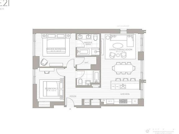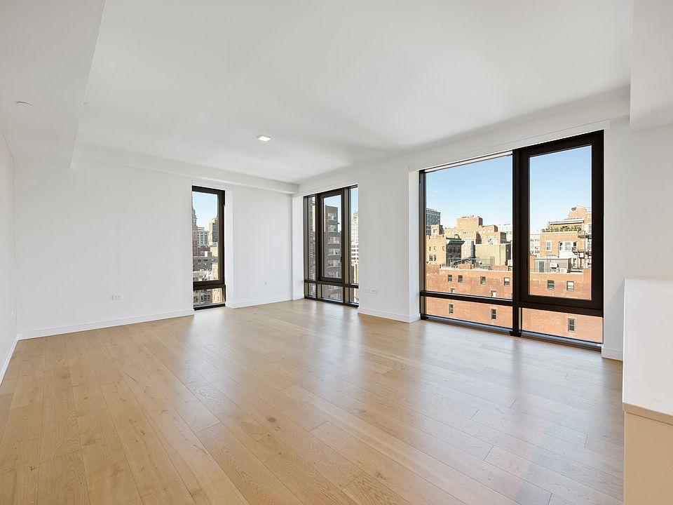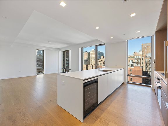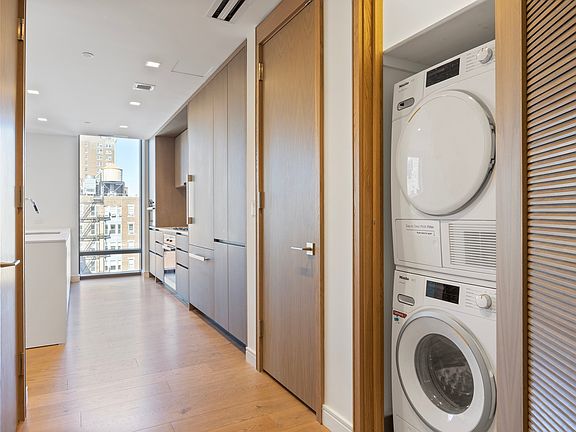 *Available on Sep 20th* Welcome to Residence 15A, a stunning 2-bedroom, 2-bathroom corner unit at 200 East 21st Street, offering 1,429 square feet of luxurious living space. With Southern, Western, and Eastern exposures, this home is filled with natural light and offers impressive views through oversized bronze windows, pre-wired for motorized shades. The interior features wide plank oak flooring with a smoked oil finish and sleek Valli & Valli hardware on all doors. The kitchen is a chef's delight, with a spacious white matte lacquer island, custom oak cabinetry, and white sand Quartzite countertops. Top-of-the-line Miele appliances complete the space, and a Miele Prestige Washer and Dryer are conveniently located nearby. Both bathrooms are beautifully designed with radiant heat flooring and elegant finishes. The primary bathroom features Turkish Lilac marble, a custom vanity, and Dornbracht fittings, while the secondary bathroom offers polished white stone floors and matching fixtures. The primary bedroom is generously sized, with a large walk-in closet and custom-built storage. 200 East 21st Street, designed by BKSK Architects with interiors by Champalimaud, is a LEED Gold Certified building in the heart of Gramercy. Sustainable features include solar-heated water, advanced windows and insulation, and rainwater collection. Amenities include a Wellness Suite with a fitness center, sauna, and treatment room, a residents' lounge with an entertainment area and kitchen, and a rooftop lounge with lush plantings and stone pathways. Residence 15A offers a perfect blend of luxury, comfort, and sustainability in a prime Gramercy location. Sorry- No Pets.