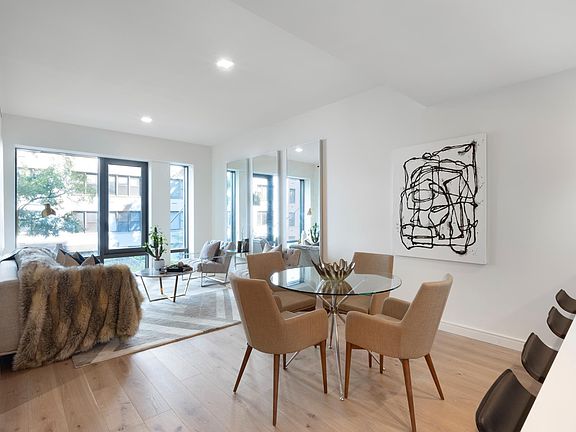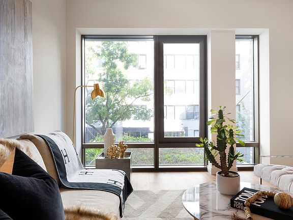 NOW OVER 90% SOLD Residence 2C at 200 East 21st Street is a stunning 880 square foot 1-bedroom, 1-bath home with beautiful northern light streaming in from over 8 tall bronze windows. Thoughtfully proportioned rooms and spaces feature 7" wide plank oak flooring finished in a sophisticated custom smoked oil stain, while grand entry and interior doors feature Valli & Valli hardware throughout. The open Poliform kitchen designed by Champalimaud features a white matte lacquer breakfast bar and custom oak cabinetry finished in a smoked oil stain, complemented by white sand Quartzite countertops and backsplash in a honed suede finish and sleek Dornbracht fixtures. The kitchen is outfitted with a fully integrated luxury appliance package by Miele. The lavish primary bath is encased with Turkish Lilac marble walls, complemented by white stone floors, a custom RiFRA vanity, and Dornbracht fittings and fixtures throughout. A Miele Prestige Washer and Dryer, state-of-the-art Daikin heating and cooling system, and pre-wiring for motorized shades at all windows complete this outstanding residence.200 East 21st Street is a private enclave of 67 exceptional residences in the coveted Gramercy neighborhood. The renowned architects at BKSK have brought a sophisticated depth and artistry to the historically contextual masonry and glass facade that is both quiet and commanding. The sumptuous interiors are crafted by the celebrated design firm, Champalimaud, while renowned landscape architect Halsted Welles Associates has designed thoughtfully integrated communal green spaces and landscaped private terraces. Opportunities for wellness abound, as carefully conceived indoor and outdoor spaces create a holistically enriched living experience, including a sky-lit formal Wellness Suite reception area with part-time attendant; sun-filled fitness center with adjacent lockers, sauna, and treatment room; residents lounge with entertainment center and entertaining kitchen; and integrated planted rooftop lounge designed by Halsted Welles Associates featuring lush and native adaptive plantings and meandering stone pathways for a peaceful retreat from the excitement of the city. The latest addition to Alfa Developments Green Collection of sustainable properties targeting LEED Gold Certification, 200 East 21st Street offers a suite of sustainable features, including solar-heated domestic water; advanced-performance windows and reinforced insulation for reduced energy consumption; rainwater collection for irrigation of the planted gardens; high-efficiency appliances; and responsibly sourced eco-friendly materials and finishes. Pricing and availability subject to change. The complete terms are in an offering plan available from the Sponsor (File No: CD 16-0374).