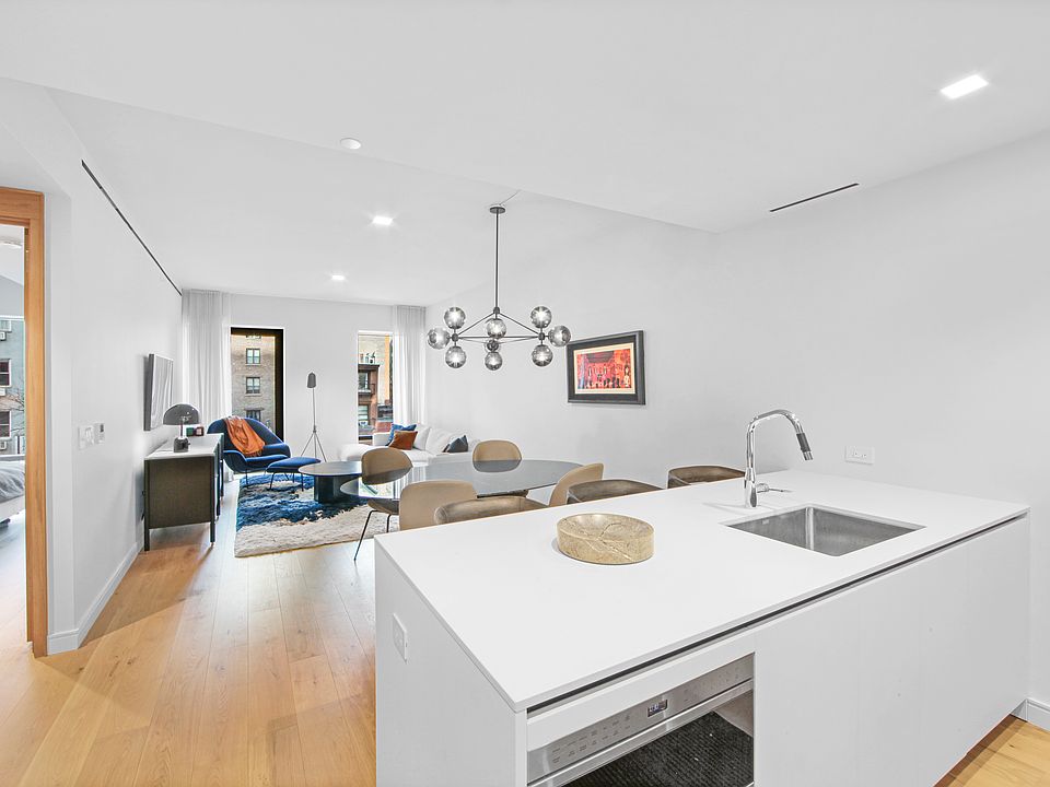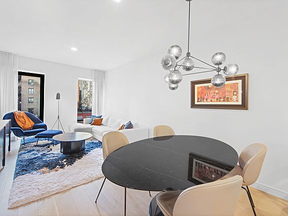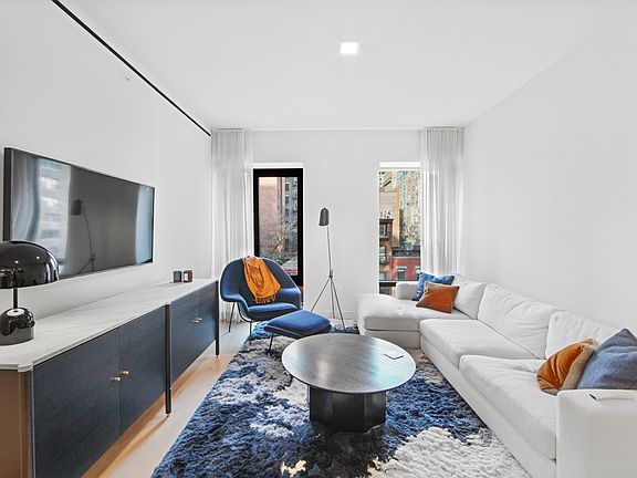 Welcome to residence 4B at 200 East 21st Street. Available April 15th. This 772 square foot 1 bedroom features western exposure with light streaming in from the 8 foot tall windows. Condo board approval is required and fees apply. The open kitchen features a breakfast bar and custom oak cabinetry, along with Quartzite countertops. The kitchen is outfitted with high-end Miele appliances including a dishwasher, gas range, oven, microwave oven and refrigerator. The luxury bathroom with marble walls is complemented by white stone floors, a custom vanity, and Dornbracht fittings and fixtures throughout. There is an in-unit washer and dryer and and central Daikin heating and cooling system. There are 7" wide plank oak flooring throughout. 200 East 21st Street Condominium amenities include a doorman, sun-filled fitness center with adjacent lockers, sauna, and treatment room; residents' lounge with entertainment center and entertaining kitchen and a roof deck lounge. The lease term is one year, no pets allowed, and basic financial parameters apply.