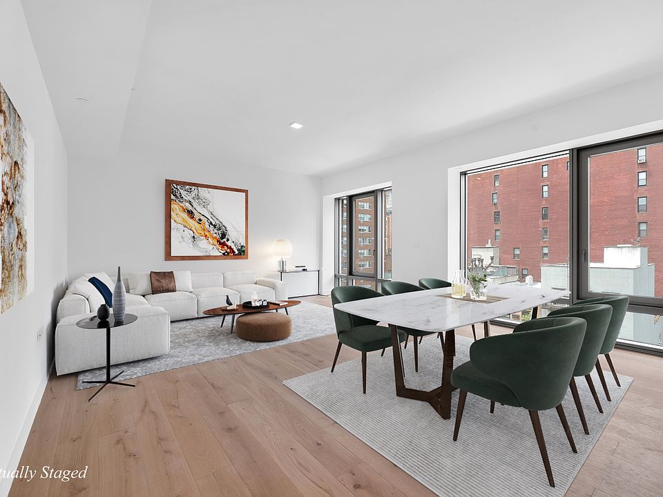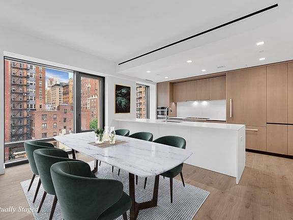 AVAILABLE SEPTEMBER 15, TENANT OCCUPIED, 24 HOURS NOTICE REQUIRED. Exceptional design and breathtaking views fill this two-bedroom, two-bathroom showplace in an elite Gramercy condominium. A wall of western windows and open-sky views greet you in this 1,410-square-foot destination for sumptuous entertaining and relaxation. The oversized great room provides ample space for seating and dining areas, or enjoy casual meals at the breakfast bar in the sleek open kitchen where minimalist oak cabinetry and Quartzite surround Miele appliances. Eastern light will nudge you awake in the serene master suite filled with a custom walk-in closet, custom window treatments, and an enviable en suite marble bathroom with radiant heat floors, a soaking tub, glass shower and double vanity. The second bedroom is well-proportioned and placed conveniently across from the second full bath. Wide-plank white oak flooring runs underfoot while thoughtful details, like custom lighting and bronze window frames, add designer elegance throughout. Extra closet space, an in-unit Miele washer-dryer, and Daikin heating and cooling add effortless ease and comfort to this impeccable Gramercy residence. Built in East 21st Street is a contemporary full-service condominium focused on sustainability. Residents of the pet-friendly building enjoy full-time doorman service, laundry, playroom, storage, bike room, a state-of-the-art fitness and wellness center, a residents" lounge with catering kitchen, and gorgeous outdoors spaces, including a planted rooftop. Green features include advanced performance windows and insulation, solar-heated water, rainwater collection for irrigation, eco-friendly materials and energy-efficient appliances. Located in Gramercy, near vibrant NoMad and the Flatiron District, the immediate neighborhood provides fantastic dining, entertainment and shopping plus easy access to both Union Square and Madison Square Park. Nearby 4/5/6, N/Q/R and L trains put the rest of the city within easy reach. Tenant Credit Check Fee $20 One Month's Rent-13,250 One Month's Security Deposit-13,250 Tenant Background Report Fee $125 per applicant (additional $75 for criminal check if required by the Board) Tenant Move In Deposit (Refundable) $500 Tenant Move In Fee $1,000 Tenant Processing Fee $700 ($750 without a Broker) Digital Submission Fee $65 Application Admin Fee 5% of the Total Fees not including Digital Submission and Initiation Fees