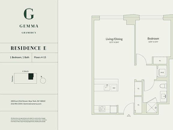 1 Bed in coveted Gramercy new development. Showings are by APPOINTMENT ONLY. Please email/message through Streeteasy to set up a showing. Boasting 12 ft ceilings and wide plank wooden flooring, 15E offers open, airy layouts and the highest quality fixtures and finishes throughout. 15E includes ventless Bosch washer/dryers conveniently tucked away in a closeted area. Thoughtfully designed kitchens provide a clean, modern layout with integrated cabinetry, best-in-class appliances, custom millwork, and Calacatta quartz countertops with full-height backsplashes. A stainless steel Bertazzoni convection oven and hood are complemented by an Induction cooktop, Blomberg dishwasher, Blomberg refrigerator, and stainless steel undermount sink from Kohler with Brizo fixtures. A true retreat, Gemma's serene baths make every day feel as though you've stepped into a luxurious hotel. Outfitted in white tile from Porcelanosa, features include quartz vanities from Kohler with Duravit fixtures and Kohler toilets. The soaking bathtubs are designed by Hydro System and feature both regular and handheld pressure balance shower heads from Brizo. Gemma offers an elevated lifestyle and luxurious retreat with its dedicated fitness center, comfortable second-floor lounge, bicycle storage, rooftop entertaining lounge, and a stunning rooftop terrace with panoramic views of the city skyline! Move-in Fees: First Month's Rent 1 Month Security Deposit $20 Application fee per person Amenity fee $50/month (optional) $50/month pet fee **service animals excluded from fee** Adding to its many desirable features, Gemma is a Passive House residence, meaning it reduces energy consumption by up to 85% while delivering the highest standard of green living, superior comfort, and indoor air quality. *Photos are reflective of finishes and design, not of actual unit.