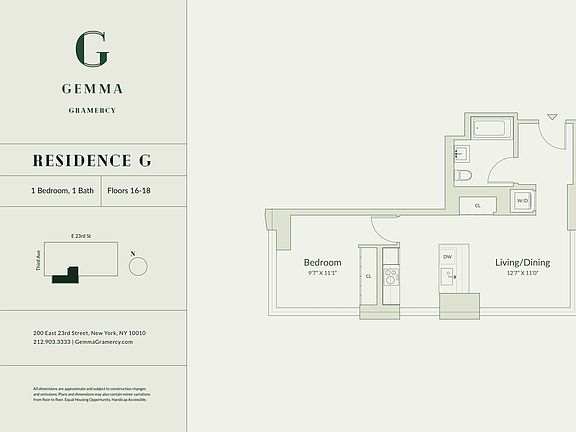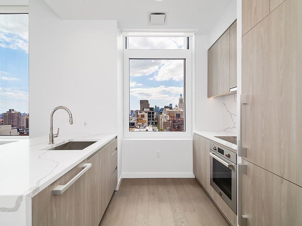 Beautiful 1 bedroom with South, East, and West Exposure! Available Starting 1/1. EMAIL or MESSAGE to schedule an appointment - please do not text/call. Boasting 10.5 ft ceilings and wide plank wooden flooring, 16E offers open, airy layouts and the highest quality fixtures and finishes throughout. 16E includes ventless Bosch washer/dryers conveniently tucked away in a closeted area. Thoughtfully designed kitchens provide a clean, modern layout with integrated cabinetry, best-in-class appliances, custom millwork, and Calacatta quartz countertops with full-height backsplashes. A stainless steel Bertazzoni convection oven and hood are complemented by an Induction cooktop, Blomberg dishwasher, Blomberg refrigerator, and stainless steel undermount sink from Kohler with Brizo fixtures. A true retreat, Gemma's serene baths make every day feel as though you've stepped into a luxurious hotel. Outfitted in white tile from Porcelanosa, features include quartz vanities from Kohler with Duravit fixtures and Kohler toilets. The soaking bathtubs are designed by Hydro System and feature both regular and handheld pressure balance shower heads from Brizo. Gemma offers an elevated lifestyle and luxurious retreat with its dedicated fitness center, comfortable second-floor lounge, bicycle storage, rooftop entertaining lounge, and a stunning rooftop terrace with panoramic views of the city skyline! Adding to its many desirable features, Gemma is a Passive House residence, meaning it reduces energy consumption by up to 85% while delivering the highest standard of green living, superior comfort, and indoor air quality. *Photos are reflective of finishes and design, not of actual unit.