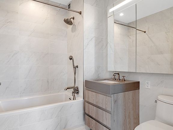 Beautiful 2-bedroom 2-bath apartment in Gramercy Park with double exposure. Bright and Sunny. Available starting 9/1. Please inquire via Streeteasy to set up an appointment. All requests will be responded to via email - kindly refrain from calling or texting. Boasting 10.5 ft ceilings and wide plank wooden flooring, 17A offers open, airy layouts and the highest quality fixtures and finishes throughout. 17A includes ventless Bosch washer/dryers conveniently tucked away in a closeted area. Thoughtfully designed kitchens provide a clean, modern layout with integrated cabinetry, best-in-class appliances, custom millwork, and Calacatta quartz countertops with full-height backsplashes. A stainless steel Bertazzoni convection oven and hood are complemented by an Induction cooktop, Blomberg dishwasher, Blomberg refrigerator, and stainless steel under mount sink from Kohler with Brizo fixtures. A true retreat, Gemma's serene baths make every day feel as though you've stepped into a luxurious hotel. Outfitted in white tile from Porcelanosa, features include quartz vanities from Kohler with Duravit fixtures and Kohler toilets. The soaking bathtubs are designed by Hydro System and feature both regular and handheld pressure balance shower heads from Brizo. Gemma offers an elevated lifestyle and luxurious retreat with its dedicated fitness center, comfortable second-floor lounge, bicycle storage, rooftop entertaining lounge, and a stunning rooftop terrace with grills and panoramic views of the city skyline! Adding to its many desirable features, Gemma is a Passive House residence, meaning it reduces energy consumption by up to 85% while delivering the highest standard of green living, superior comfort, and indoor air quality. Move-in Fees: First Month's Rent 1 Month Security Deposit $20 Application fee per person Amenity fee $50/month (optional) $50/month pet fee *Photos are reflective of finishes and design, not of actual unit.