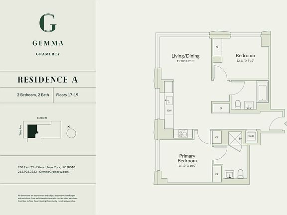 Please inquire via Streeteasy to set up an appointment. All requests will be responded to via email. Welcome to The Gemma! Beautiful 2 bedroom 2 bath unit in Gramercy Park with double exposure. Boasting 10.5 ft ceilings and wide plank wooden flooring, 18A offers open, airy layouts and the highest quality fixtures and finishes throughout. 18A includes ventless Bosch washer/dryers conveniently tucked away in a closeted area. Thoughtfully designed kitchens provide a clean, modern layout with integrated cabinetry, best-in-class appliances, custom millwork, and Calacatta quartz countertops with full-height backsplashes. A stainless steel Bertazzoni convection oven and hood are complemented by an Induction cooktop, Blomberg dishwasher, Blomberg refrigerator, and stainless steel under mount sink from Kohler with Brizo fixtures. A true retreat, Gemma's serene baths make every day feel as though you've stepped into a luxurious hotel. Outfitted in white tile from Porcelanosa, features include quartz vanities from Kohler with Duravit fixtures and Kohler toilets. The soaking bathtubs are designed by Hydro System and feature both regular and handheld pressure balance shower heads from Brizo. Gemma offers an elevated lifestyle and luxurious retreat with its dedicated fitness center, comfortable second-floor lounge, bicycle storage, rooftop entertaining lounge, and a stunning rooftop terrace with grills and panoramic views of the city skyline! Adding to its many desirable features, Gemma is a Passive House residence, meaning it reduces energy consumption by up to 85% while delivering the highest standard of green living, superior comfort, and indoor air quality.