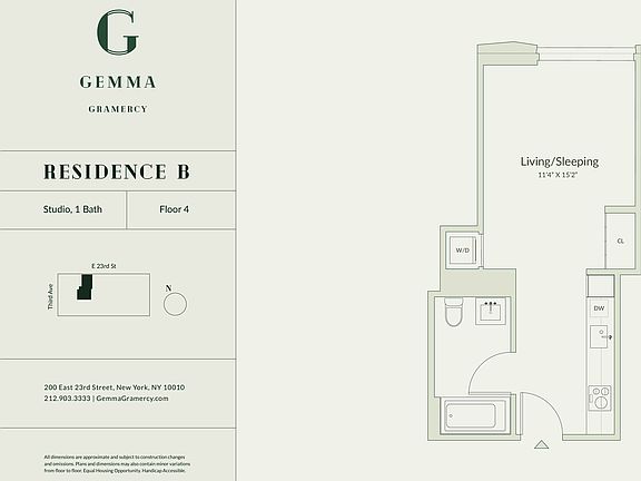 Now leasing, Gemma Gramercy. Tenant occupied until 7/1. Please inquire via Streeteasy message to set up a tour. Boasting 10.5' ft ceilings and wide plank wooden flooring, 4B offers open, airy layouts and the highest quality fixtures and finishes throughout. 4B includes ventless Bosch washer/dryers conveniently tucked away in a closeted area. Thoughtfully designed kitchens provide a clean, modern layout with integrated cabinetry, best- in-class appliances, custom millwork, and Calacatta quartz countertops with full-height backsplashes. A stainless steel Bertazzoni convection oven and hood are complemented by an induction cooktop, Blomberg dishwasher, Blomberg refrigerator, and stainless steel undermount sink from Kohler with Brizo fixtures. A true retreat, Gemma's serene baths make every day feel as though you've stepped into a luxurious hotel. Outfitted in white tile from Porcelanosa, features include quartz vanities from Kohler with Duravit fixtures and Kohler toilets. The soaking bathtubs are designed by HydroSystem and feature both regular and handheld pressure balance shower heads from Brizo. Gemma offers an elevated lifestyle and luxurious retreat with its dedicated fitness center, comfortable second-floor lounge, bicycle storage space, rooftop entertaining lounge, and a stunning rooftop terrace with panoramic views of the city skyline. Move-in Fees: First Month's Rent 1 Month Security Deposit $20 Application fee per person Amenity fee $50/month (optional) $50/month pet fee **service animals excluded from fee** Adding to its many desirable features, Gemma is a Passive House residence, meaning it reduces energy consumption by up to 85% while delivering the highest standard of green living, superior comfort, and indoor air quality. **photos indicative of finished only**