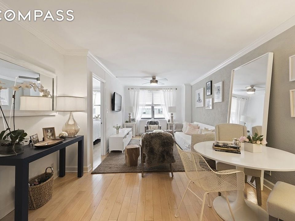 Light, spacious and dreamy one bedroom in Gramercy. Sunny, west-facing apartment features light oak hardwood floors, exceptional closet space and crown molding throughout. The apartment has a spacious entryway, comfortable dimensions and smart layout. The kitchen is in excellent condition, with oak cabinetry, wonderful counter space and a full complement of appliances. The bathroom is brand new, renovated and modern. The bathroom can be directly accessed from either the bedroom or living room. The Crystal House is a full service 24 hour doorman building with a beautifully renovated modern lobby, updated hallways, roof deck, garage, central laundry room, bike room, a landscaped plaza and private storage. There is FIOS available in this top tier Cooperative. Pied-a-terres, pets and co-purchasing are allowed. The building allows up to 90% financing. Located in the heart of Gramercy near Madison Square Park, Union Square, Eataly, Whole Foods & Trader Joe's, and some of New York's finest restaurants and shopping destinations.